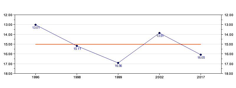 | Antall deltagelser | 5 (i perioden 1996 - 2017) |
