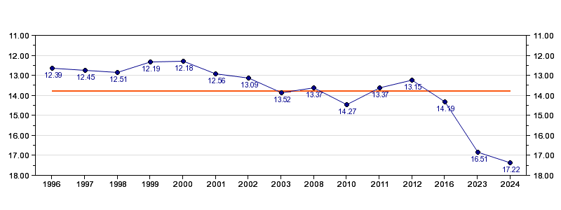 Antall deltagelser15 (i perioden 1996 - 2024)