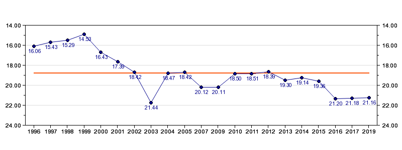 | Antall deltagelser | 21 (i perioden 1996 - 2019) |