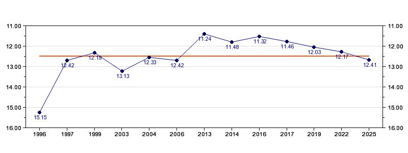 | Antall deltagelser | 13 (i perioden 1996 - 2025) |