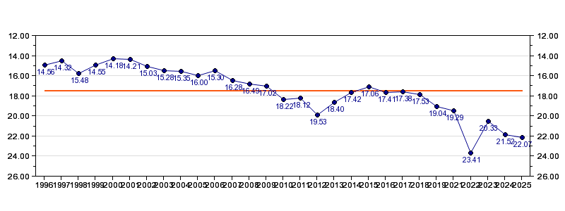 Antall deltagelser29 (i perioden 1996 - 2025)