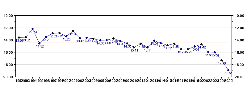 Antall deltagelser32 (i perioden 1992 - 2025)