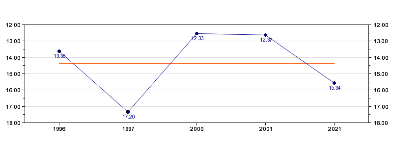 Antall deltagelser5 (i perioden 1996 - 2021)