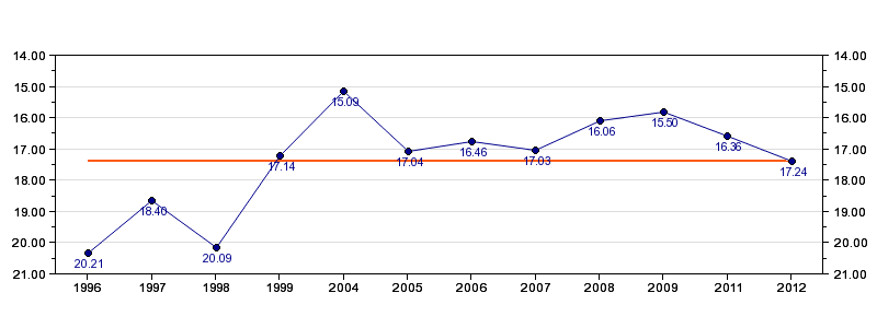 Antall deltagelser12 (i perioden 1996 - 2012)