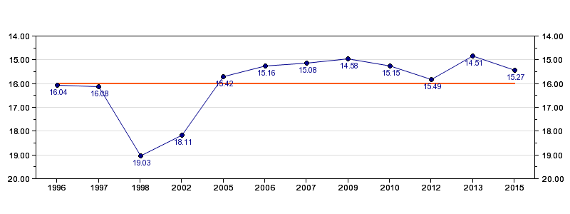 Antall deltagelser12 (i perioden 1996 - 2015)