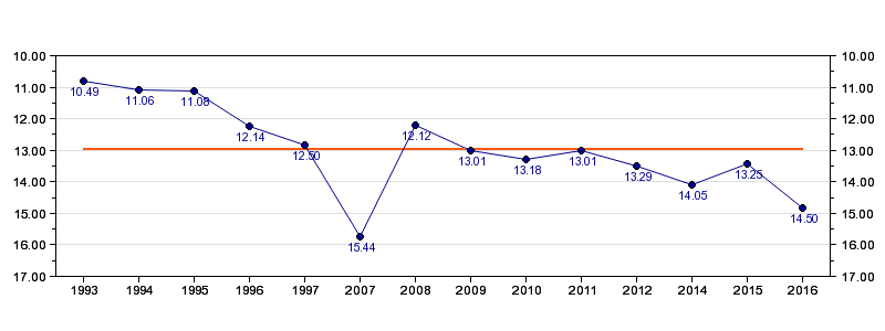 | Antall deltagelser | 14 (i perioden 1993 - 2016) |