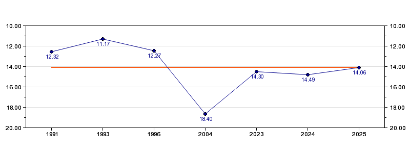| Antall deltagelser | 7 (i perioden 1991 - 2025) |