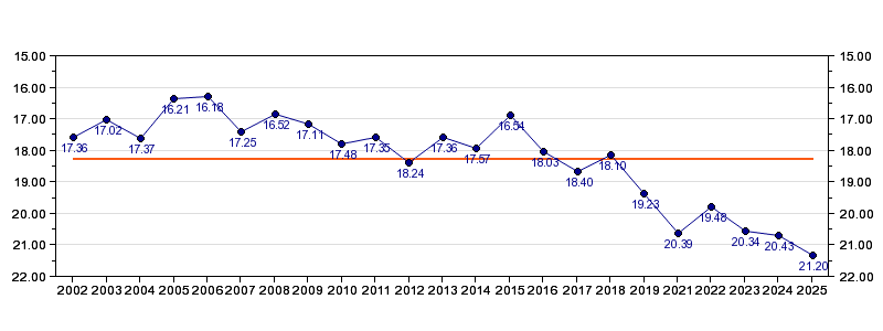Antall deltagelser23 (i perioden 2002 - 2025)