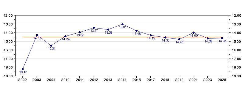 Antall deltagelser15 (i perioden 2002 - 2025)