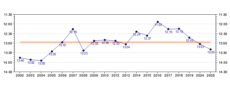 | 2025 | Kalkulator | 13:20 (1356 m/h) | 02:15 (1434 m/h, 105 %) | 06:17 (04:02, 1364 m/h, 100 %) | 11:34 (05:17, 1298 m/h, 95 %) | 13:20 (01:46, 1412 m/h, 104 %) |