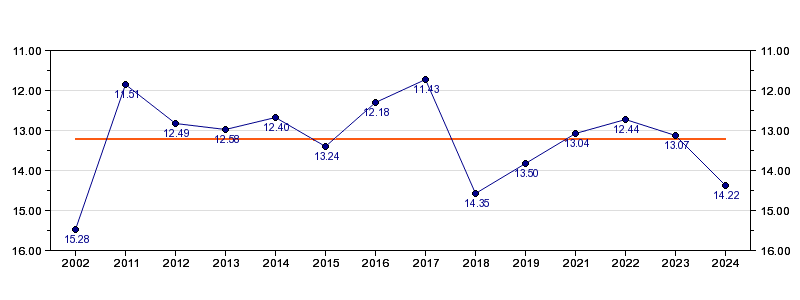 Antall deltagelser14 (i perioden 2002 - 2024)