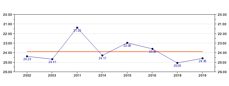 | Antall deltagelser | 8 (i perioden 2002 - 2019) |