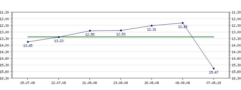| 15.07.2008 | 13.45 | 22.07.2008 | 13.23 | 21.08.2008 | 12.55 | 23.08.2008 | 12.53 | 26.08.2008 | 12.31 | 08.09.2008 | 12.19 |