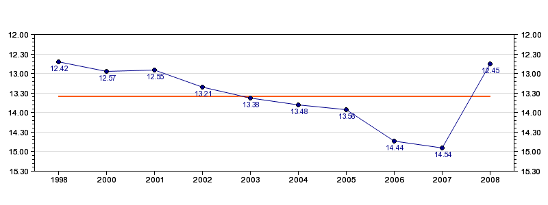 Antall deltagelser10 (i perioden 1998 - 2008)