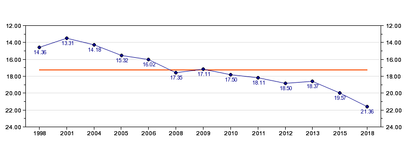 Antall deltagelser13 (i perioden 1998 - 2018)