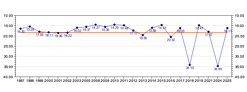 | 2002 | Kalkulator | 18:22 (984 m/h) | 02:52 (1126 m/h, 114 %) | 08:30 (05:38, 976 m/h, 99 %) | 15:56 (07:26, 922 m/h, 93 %) | 18:22 (02:26, 1025 m/h, 104 %) |