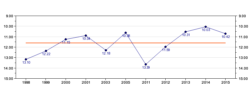 | Antall deltagelser | 11 (i perioden 1998 - 2015) |