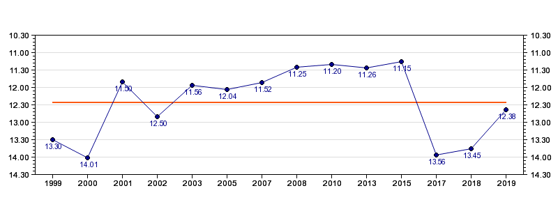 | Antall deltagelser | 14 (i perioden 1999 - 2019) |