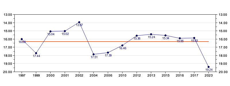 | Antall deltagelser | 14 (i perioden 1997 - 2023) |