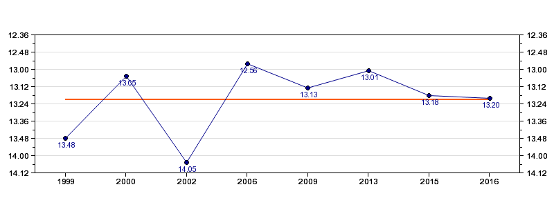 | Forrige tid | 13.20 (2016) |
