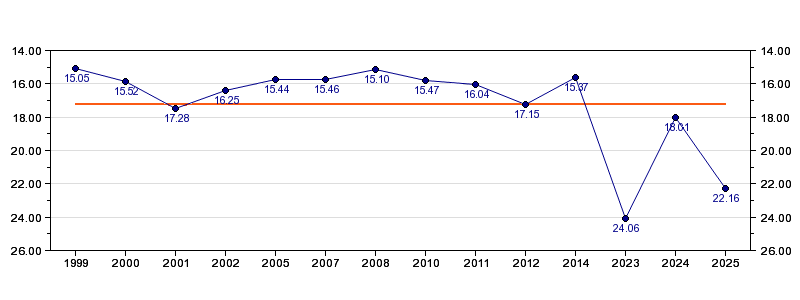 | Antall deltagelser | 14 (i perioden 1999 - 2025) |