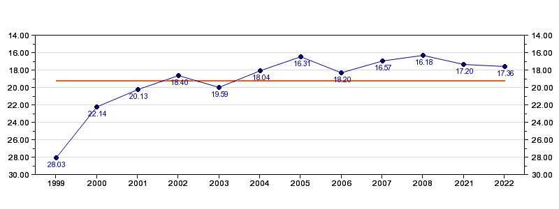 | Forrige tid | 17.36 (2022) |
