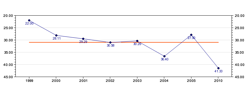 2002Kalkulator30:58 (583 m/h)03:35 (900 m/h, 154 %)13:55 (10:20, 532 m/h, 91 %)27:00 (13:05, 524 m/h, 89 %)30:58 (03:58, 629 m/h, 107 %)