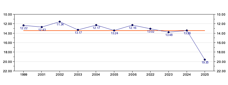 Antall deltagelser11 (i perioden 1999 - 2025)