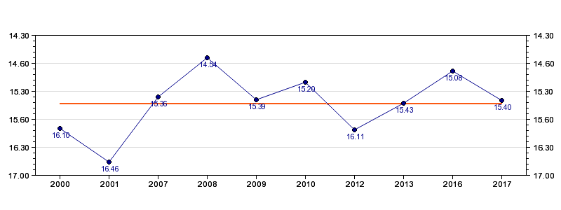 | Forrige tid | 15.40 (2017) |