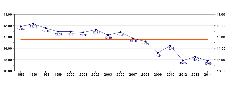 Antall deltagelser16 (i perioden 1989 - 2014)