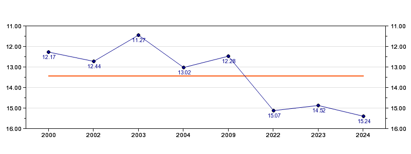 | Forrige tid | 15.24 (2024) |