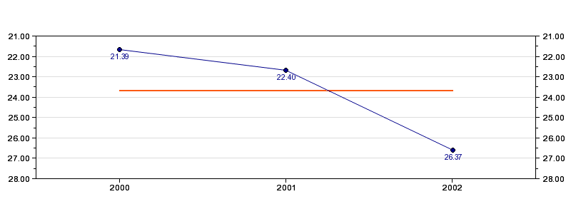 | Forrige tid | 26.37 (2002) |