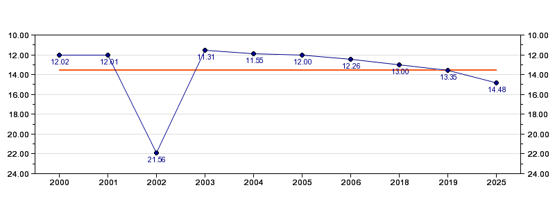 Antall deltagelser10 (i perioden 2000 - 2025)