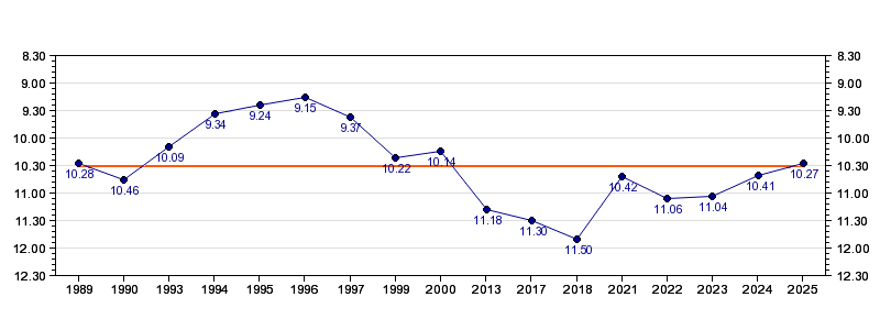 | Antall deltagelser | 17 (i perioden 1989 - 2025) |