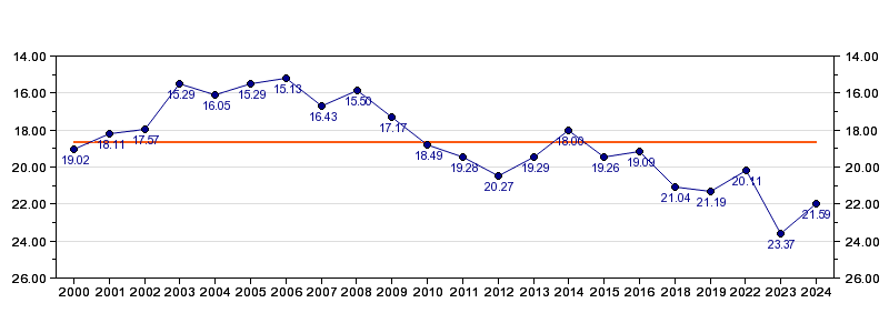 Antall deltagelser22 (i perioden 2000 - 2024)