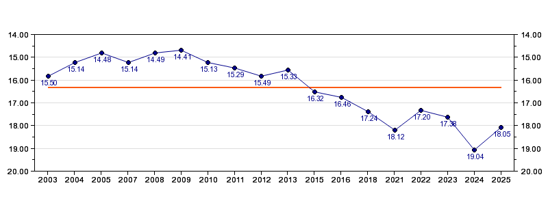 Antall deltagelser18 (i perioden 2003 - 2025)