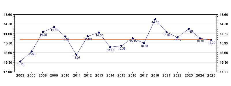 Antall deltagelser18 (i perioden 2003 - 2025)