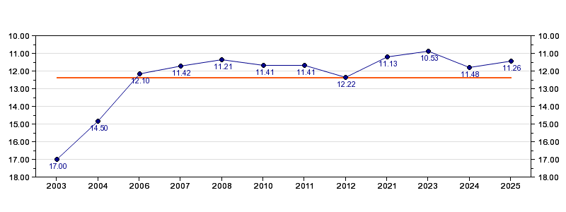 | Antall deltagelser | 12 (i perioden 2003 - 2025) |