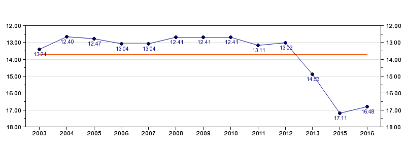 Antall deltagelser13 (i perioden 2003 - 2016)