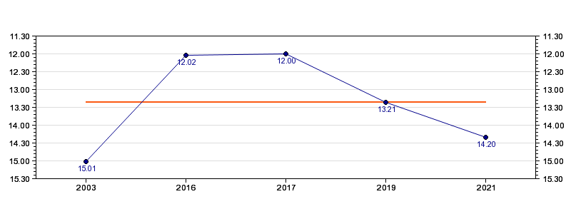 | Antall deltagelser | 5 (i perioden 2003 - 2021) |