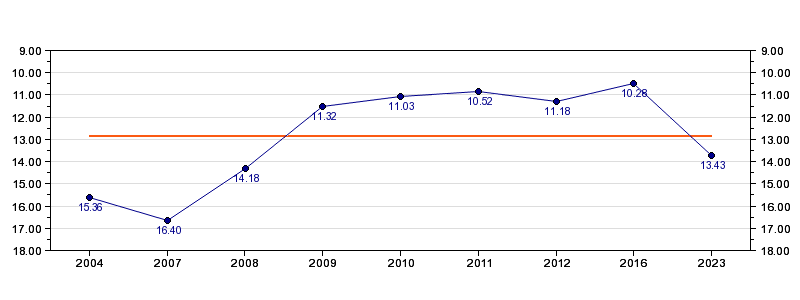 Antall deltagelser9 (i perioden 2004 - 2023)