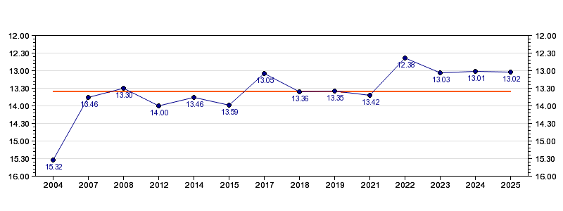 Antall deltagelser14 (i perioden 2004 - 2025)