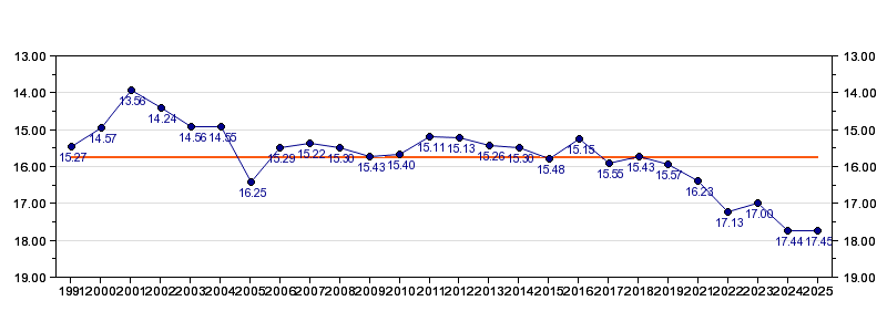 Antall deltagelser26 (i perioden 1991 - 2025)