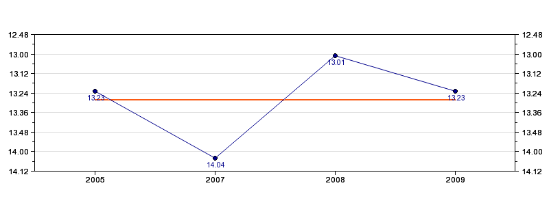 | Forrige tid | 13.23 (2009) |