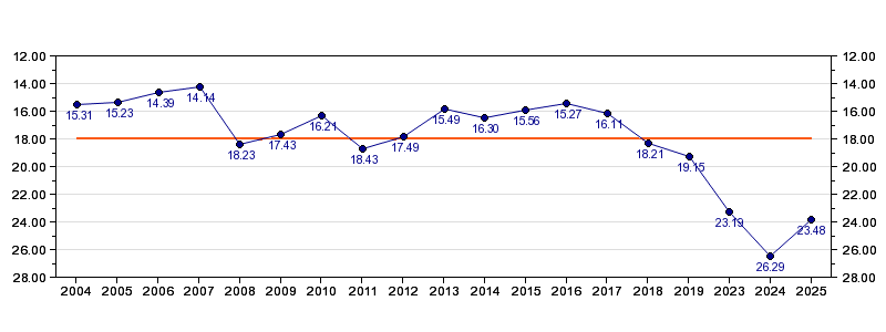 Antall deltagelser19 (i perioden 2004 - 2025)
