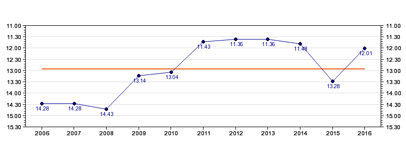2016Kalkulator12:01 (1504 m/h)02:11 (1478 m/h, 98 %)05:44 (03:33, 1549 m/h, 102 %)10:33 (04:49, 1423 m/h, 94 %)12:01 (01:28, 1701 m/h, 113 %)