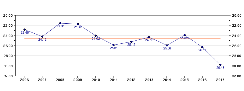 2017Kalkulator29:48 (606 m/h)04:38 (696 m/h, 114 %)13:34 (08:56, 615 m/h, 101 %)26:03 (12:29, 549 m/h, 90 %)29:48 (03:45, 665 m/h, 109 %)