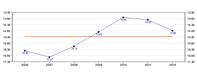 | Forrige tid | 14.59 (2014) |