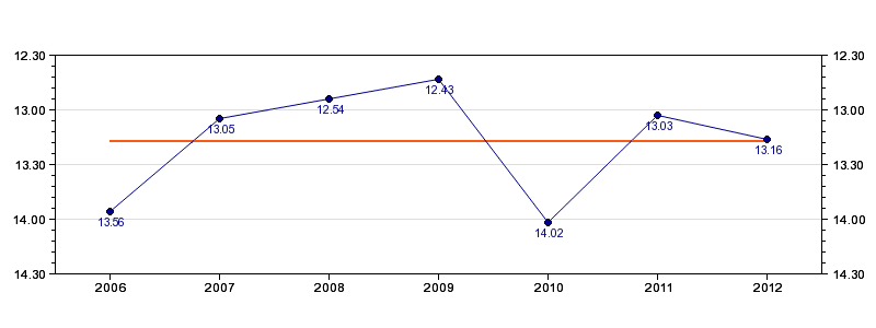 | Forrige tid | 13.16 (2012) |