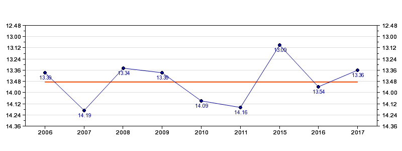 | Forrige tid | 13.36 (2017) |